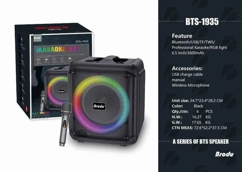 Be the first to review “BRODU BTS-1935 6.5 Inch RGB iKaraoke Box Party Speaker” Cancel reply