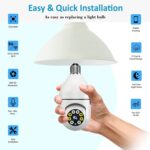 - The installation is super simple, an ordinary household E27 lamp holder interface can be used, and a real wireless surveillance camera is free of wiring troubles. Support voice two-way intercom, and communicate with family members at any time.