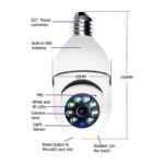 - Function: The lamp holder is a universal E27 lamp holder, easy to install, dual-light support lighting, a 360-degree panoramic rotation angle of view, mobile phone remote viewing, wifi link, intelligent human motion detection, and screen abnormal alarm, the camera when someone breaks in is detected It can actively sound the alarm and flash, real-time intelligent two-way voice intercom, 2 million high-definition pixels, maximum support 128G memory card, support cloud storage and TF card storage.