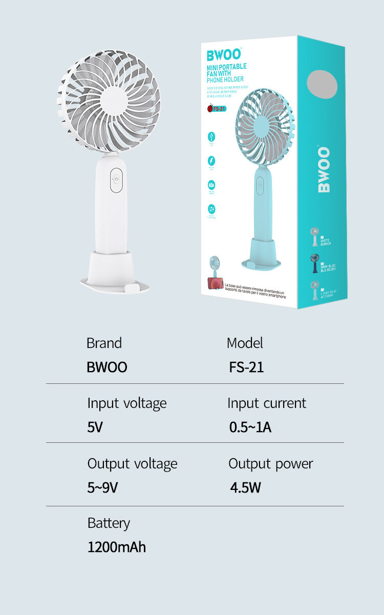 BWOO FS-21 mobile fan portable design mini micro usb hand held fan