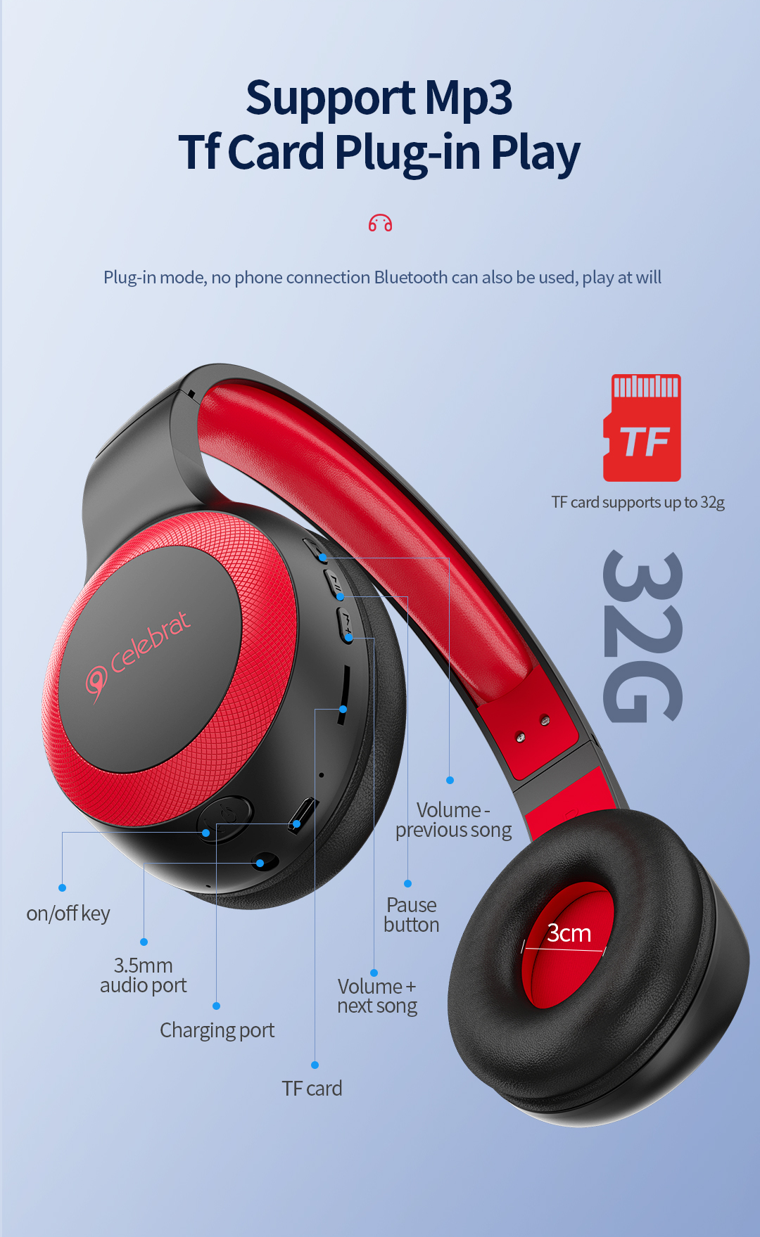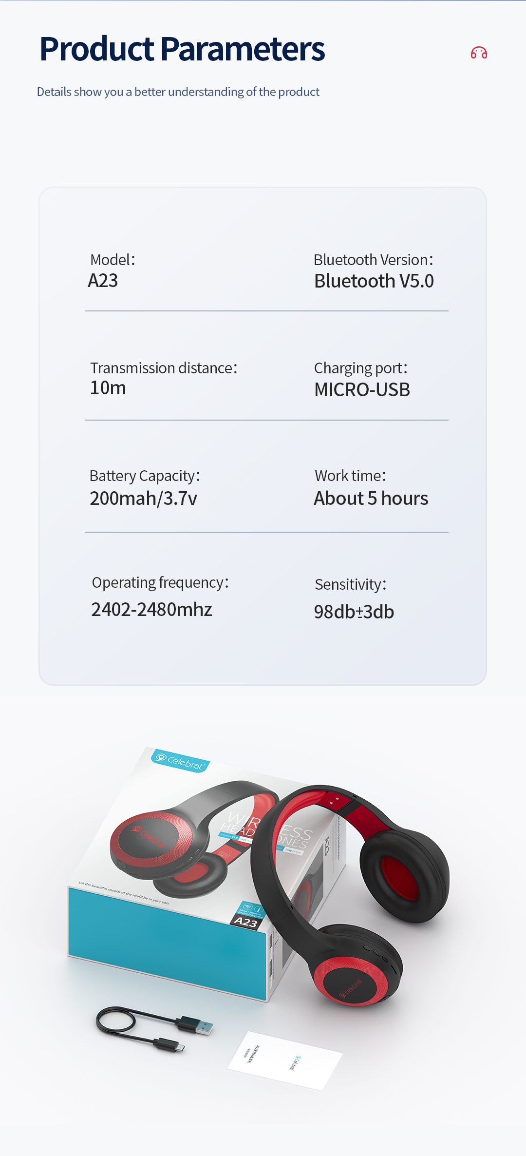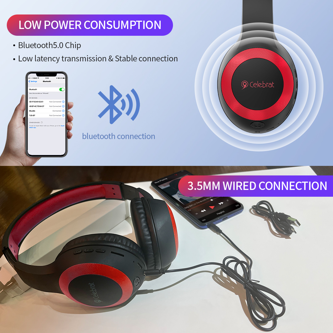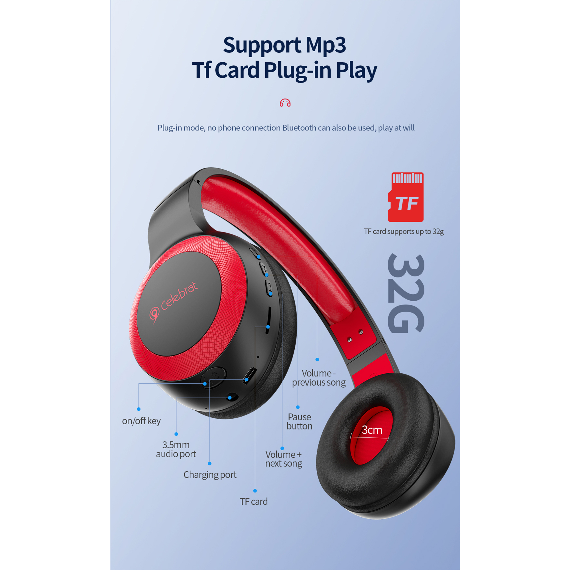 Celebrat A23 wireless Bluetooth Headphones Headsets 5.0 Powerful Super Bass Support TF Card
