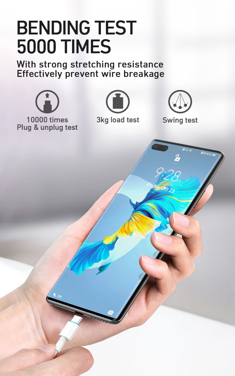 • High-quality PVC The cable uses a pure copper core design to ensure high quality and support 3A high current charging. With a tested 5000+ bend lifespan,the cables is more durable,wear-resistant and pull-resistant.
