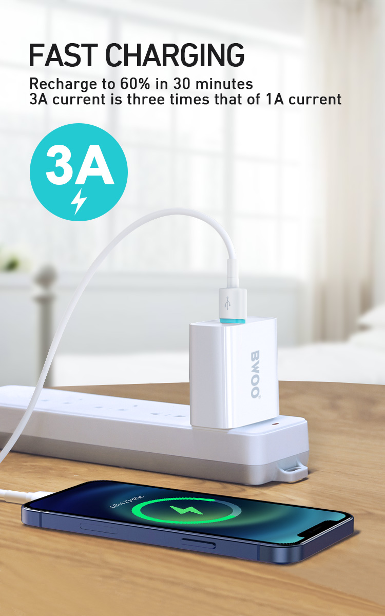 • Equipped with a smart chip that supports 3A ultra-fast charging