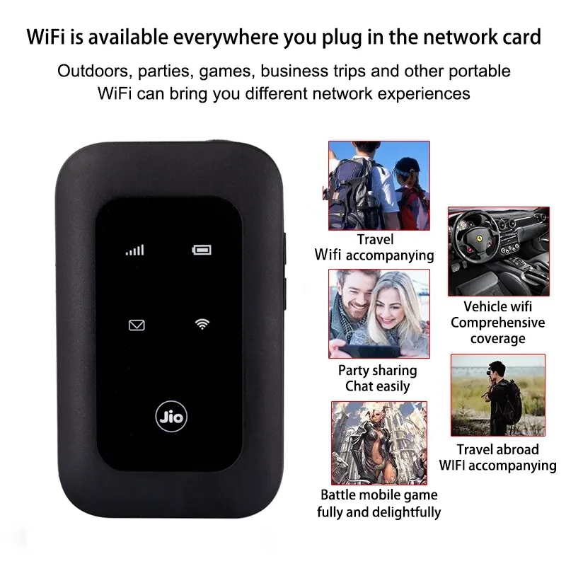 Experience the freedom of high-speed internet connectivity on the go with the JIO 4G LTE Portable WiFi Router, featuring the advanced Model MF680s. This sleek and portable device is designed to provide seamless and reliable internet access, making it the perfect companion for your travels, remote work, or everyday connectivity needs. Enjoy the convenience of versatile network support, impressive download speeds, and an extended coverage radius, all within the compact and stylish design of the JIO MF680s.