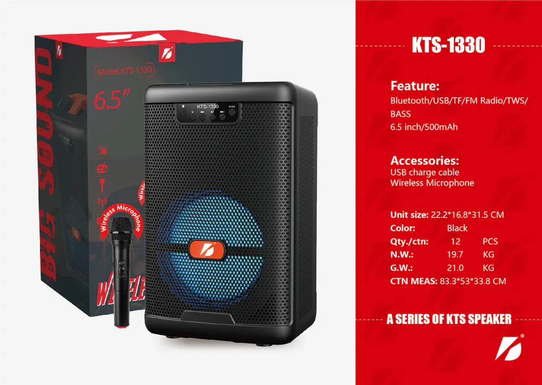 Buy KTS 1330 Portable Bluetooth Speaker with Wireless Mic is a versatile audio device that offers a seamless and convenient way to enjoy your favorite music and make hands-free calls. With its compact and portable design, you can take this speaker anywhere you go and enjoy high-quality sound on the go.