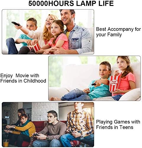 • Mini Projector: 4.7*3.4*1.9in mini Size and weight just 595g also with Pretty cute appearance make it very compact and portable. It’s very easy to carry to where you want, you can easily place this in a bag, suitcase without it taking up too much room as well as being able to store it away in a draw, cupboard in the home.(The old and new models are shipped randomly.)