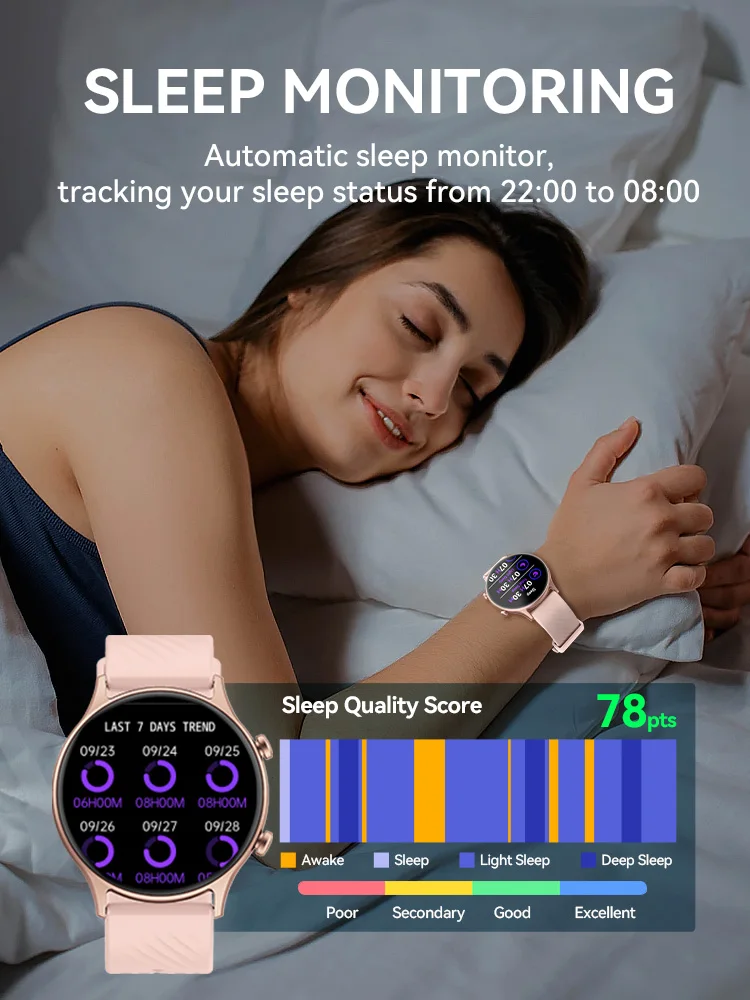 You can also use this gadget to learn more details about your sleep quality. Using a professional sleep monitoring algorithm, it can provide accurate records and analysis of each sleep stage, ranging from light sleep and deep sleep to waking, so that you can adjust your sleep accordingly. And it also allows you to detect your blood pressure in real-time for timely adjustment or medical treatment if needed.