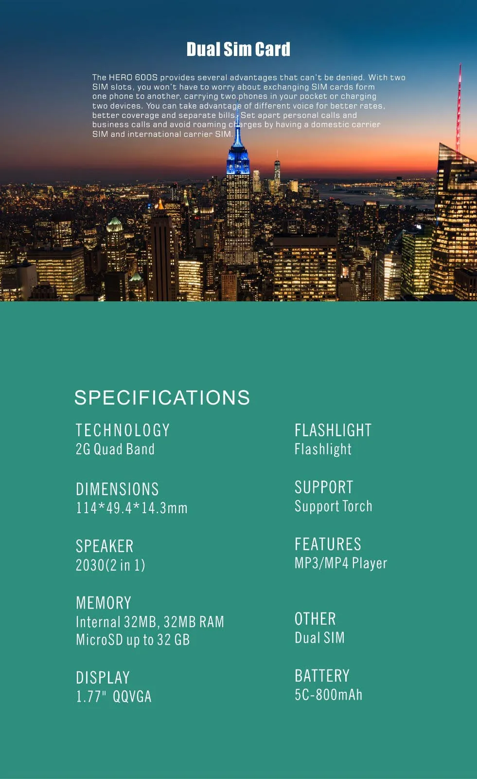 - Dual SIM 2G Quad Band