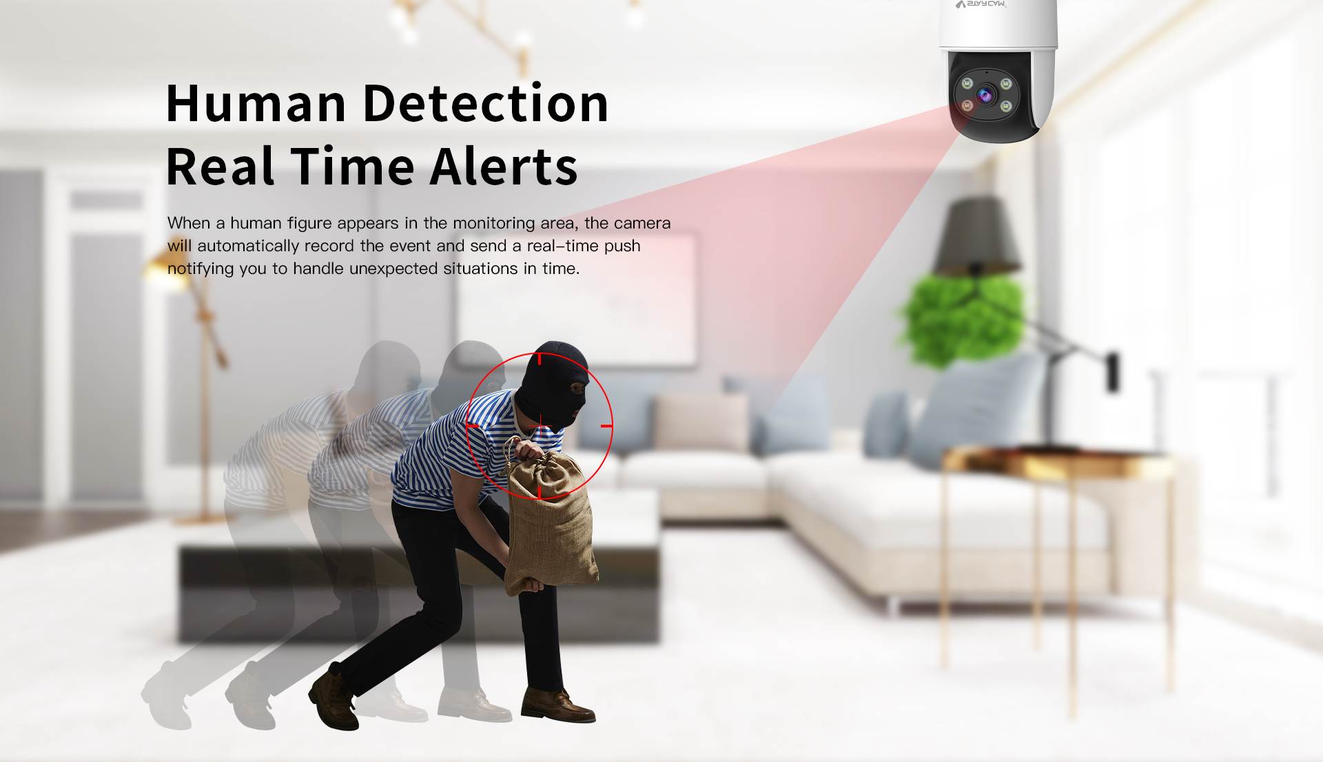 - Human detection, real time alerts, Human framing